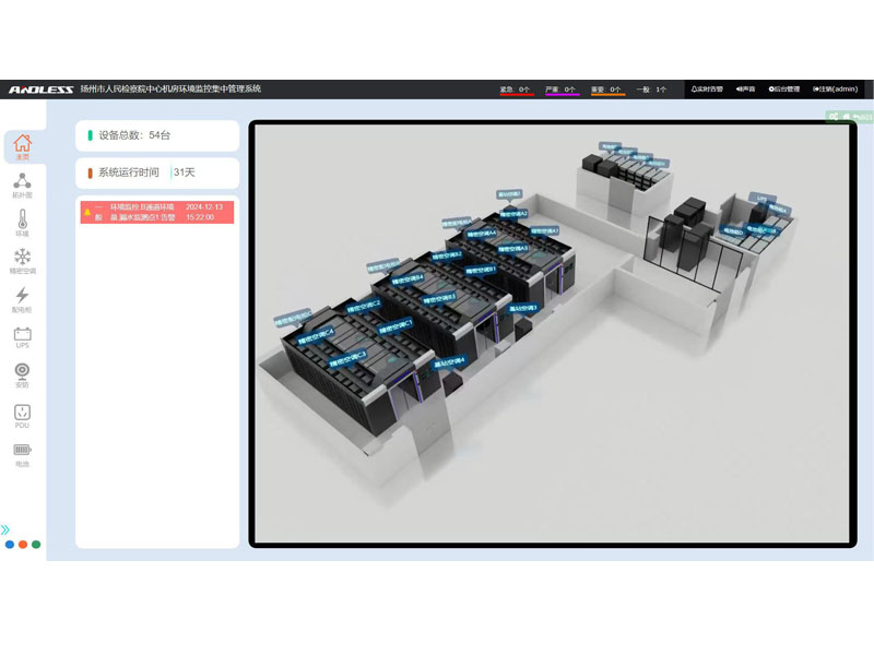 用戶(hù)介紹:       該檢察院為江蘇省揚(yáng)州市境內(nèi)的司法機(jī)關(guān)。 解決方案:      近期有幸為江蘇省某市檢察院提供三套安德力士品牌微模塊機(jī)房設(shè)備,涉及系統(tǒng)有:UPS不間斷電源、精密空調(diào)、機(jī)柜、配電、動(dòng)力環(huán)境監(jiān)控等系統(tǒng);涉及主要設(shè)備有:UPS主機(jī)(30KVA、40KVA、300KVA)、鉛酸蓄電池(100AH64節(jié)、200AH128節(jié)、250AH320節(jié))、精密空調(diào)(行級(jí)25KW12臺(tái)、基站12.5KW4臺(tái))、機(jī)柜51套,現(xiàn)已全部安裝調(diào)試完成。      微模塊數(shù)據(jù)中心的主要優(yōu)勢(shì)      1、快速部署、縮短建設(shè)周期      微模塊數(shù)據(jù)中心加快規(guī)劃與設(shè)計(jì)速度,可根據(jù)設(shè)計(jì)目標(biāo)以合理的方式配置系統(tǒng)結(jié)構(gòu),微模塊批量生產(chǎn)可以實(shí)現(xiàn)現(xiàn)貨供應(yīng),因而提高了交貨速度;標(biāo)準(zhǔn)化的連接方式可減少現(xiàn)場(chǎng)配置與連接的工作量,加快安裝速度;微模塊數(shù)據(jù)中心建設(shè)周期可大大縮短,傳統(tǒng)數(shù)據(jù)中心實(shí)施階段需要7-8月,采用微模塊建設(shè)縮短至2-3個(gè)月。      2、方便擴(kuò)展、分期建設(shè)      采用微模塊的架構(gòu),數(shù)據(jù)中心可以逐步增加,因而可使從1個(gè)微模塊到幾十個(gè)微模塊根據(jù)需求分期建設(shè)。微模塊數(shù)據(jù)中心方案顯著降低了數(shù)據(jù)中心在使用壽命期間的成本。      3、標(biāo)準(zhǔn)模塊、穩(wěn)定可靠      微模塊數(shù)據(jù)中心采用模塊化、標(biāo)準(zhǔn)化和高整合設(shè)計(jì),使得整個(gè)系統(tǒng)穩(wěn)定度高。同時(shí),微模塊數(shù)據(jù)中心可依據(jù)客戶(hù)需求,在電力備援方案上提供N、N+1、2N等配置方案。      4、綠色、節(jié)能          數(shù)據(jù)中心在使用壽命期間的電力成本是TC(總擁有成本)中的一項(xiàng)。相比傳統(tǒng)機(jī)房,微模塊數(shù)據(jù)中心制冷效率提升。微模塊數(shù)據(jù)中心結(jié)合水冷系統(tǒng)、自然冷卻系統(tǒng),PUE降低。      5、智能管理、高效運(yùn)營(yíng)      智能的管理系統(tǒng)能夠幫助客戶(hù)節(jié)能降耗,實(shí)現(xiàn)數(shù)據(jù)機(jī)房多層級(jí)、精細(xì)化能耗管理,通過(guò)多種報(bào)表精確定位能源額外損耗點(diǎn)。基于大數(shù)據(jù)分析,輸出節(jié)能優(yōu)化方案,構(gòu)建綠色數(shù)據(jù)機(jī)房。資產(chǎn)管理是對(duì)于全網(wǎng)資產(chǎn)的生命周期進(jìn)行管理實(shí)現(xiàn)資產(chǎn)信息的閉環(huán)管理,保證數(shù)據(jù)及時(shí)刷新,及時(shí)管理。同時(shí)幫助用戶(hù)制定資產(chǎn)維護(hù)計(jì)劃,在維護(hù)計(jì)劃內(nèi)幫助客戶(hù)實(shí)現(xiàn)主動(dòng)預(yù)警,同時(shí)可動(dòng)態(tài)調(diào)整維護(hù)計(jì)劃,按照當(dāng)前實(shí)際情況輸出優(yōu)化方案,構(gòu)建資產(chǎn)管理功能。